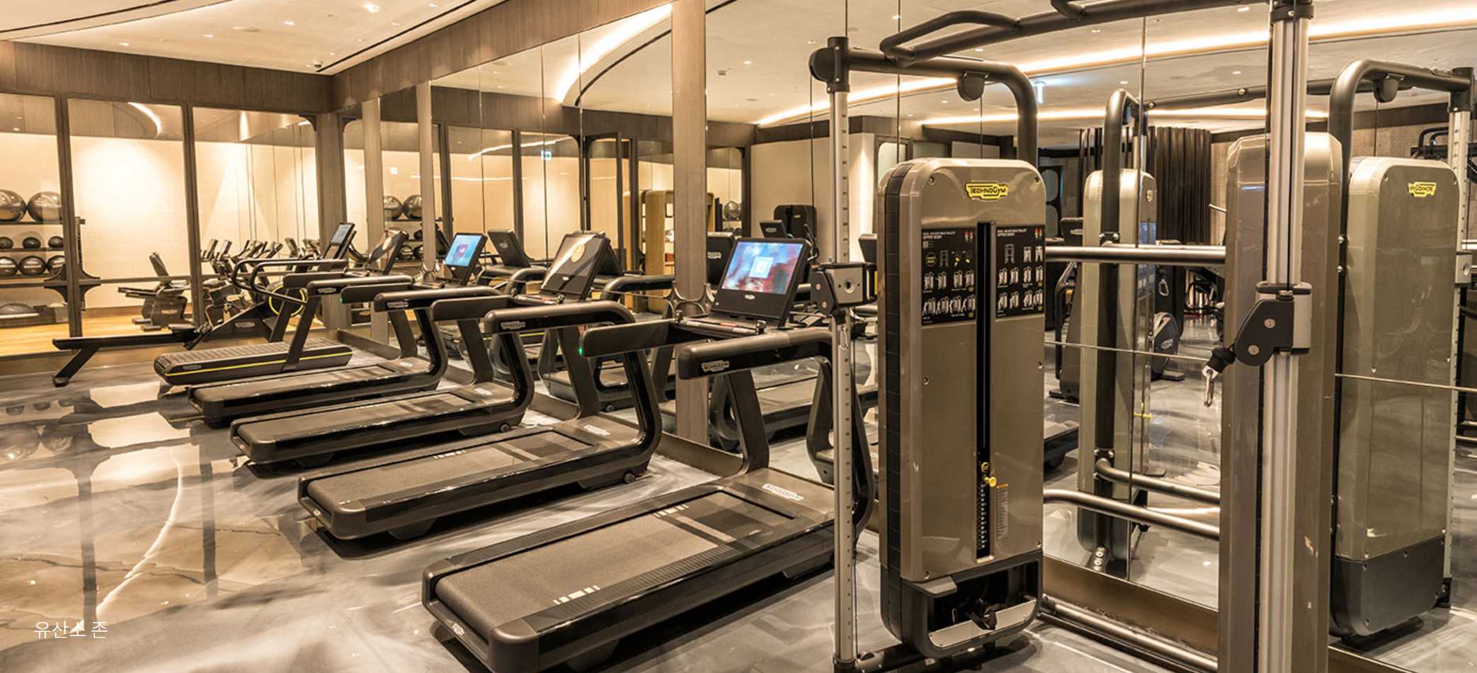 야외수영장이 되었다면 사실 굳이 피트니스까지는 안 했을 텐데, 실내수영장에서 마음껏 즐기지 못해 아쉬운 마음에 피트니트센터를 갔습니다. 피트니트센터는 실내수영장과 입구를 같이 쓰고 있는데, 사실 저 입구 인테리어가 마음에 들었습니다. 기본적인 기구들이 깔끔하고, 헬스보다는 요가 쪽이 더 맞는 편이라 스트레칭 존에 짐볼과 보수, 폼롤러가 준비되어 있는 점이 마음에 들었습니다.