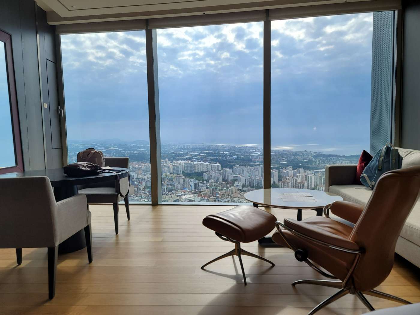 제주 5성급 호텔이라면 신라 호텔과 롯데 호텔이 유명한데 이 둘은 서귀포 쪽에 거의 나란히 붙어 있습니다. 그 외에 브랜드 네임이 있는 5성급 호텔 중 유일하게 제주 시내 한가운데 위치한 것이 그랜드 하얏트 제주 호텔입니다. 5성급 호텔이야 다 기본적인 퀄리니나 서비스가 굉장히 좋지만, 그랜드 하얏트 제주의 최장점을 꼽으라면 제주에서 흔치 않은 고층 건물이 갖는 시티뷰와 오션뷰라 생각합니다. 공항에서 차로 10분 정도 거리로 일정이 짧은 편이라면 제주에 들어와서도, 나갈 때도 비행기 시간만 잘 맞춘다면 버리는 시간 없이 효율적으로 시간을 쓸 수 있다는 것도 매우 장점입니다.