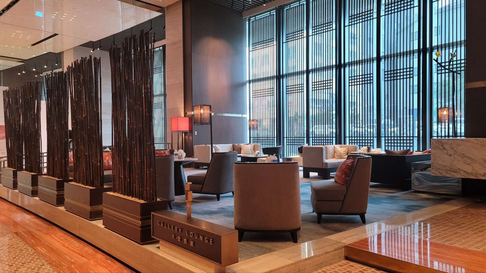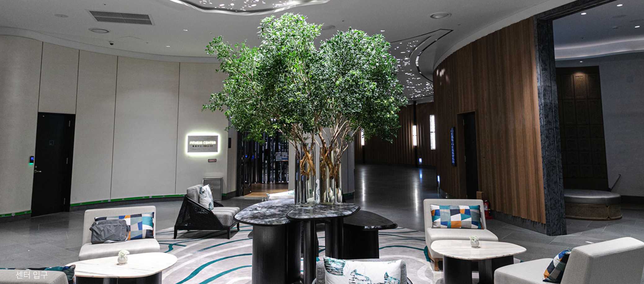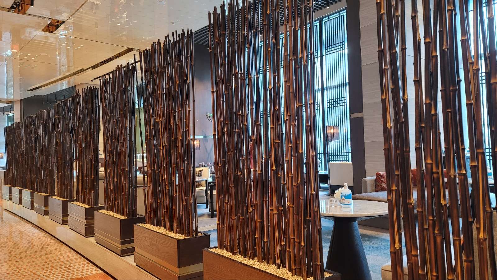 주차를 하고 엘리베이터를 타고 올라가면 프런트가 나오는데 디자인이 매우 고급스럽고 현대적인 느낌이었습니다. 신라호텔이 오랜 역사를 자랑하는 고급 호텔이지만, 아무래도 연식이 있다 보니 잘 관리되었지만, 낡은 느낌을 지울 수 없는데 반해 그랜드 하얏트는 건물 외관부터 프런트까지 매우 깨끗하고 새것, 세련된 느낌이라 사실 체감하기로는 하얏트 쪽이 더 만족스러웠습니다. 대나무 뒤쪽은 카페입니다. 한옥 디자인을 같이 겸하여 더욱 느낌이 고급스러웠습니다. 체크인 시간보다 30분 정도 일찍 도착해도 체크인하는 데는 크게 무리 없습니다.