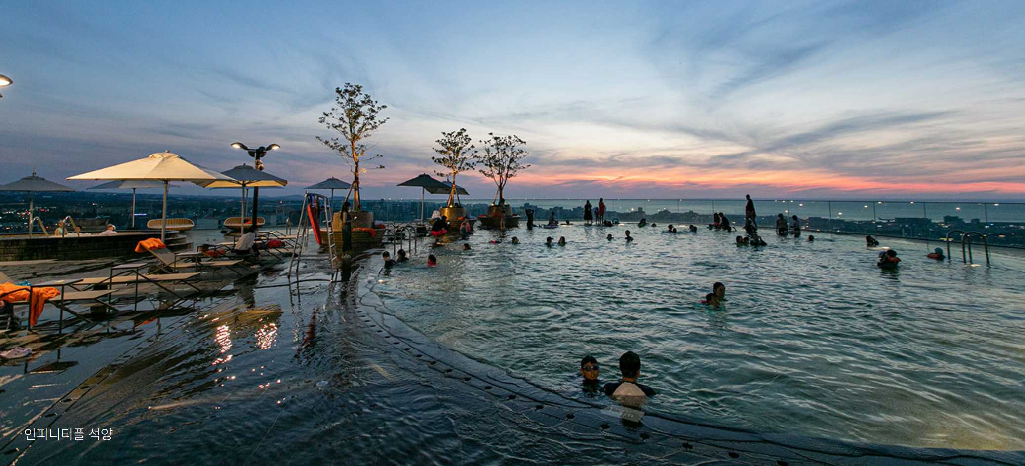 그랜드 하얏트 호텔에서 호캉스를 한다면 백미는 야외수영장일 것입니다. 저는 안타깝게도 제가 간 날 하루종일 비가 내려 야외수영장을 즐기지 못했습니다. 객실에서 아래를 내려다보면 야외수영장이 보입니다. 실내 수영장은 수영장 자체는 좁지 않지만, 즐기는 인파가 많고 아이들이 많은데 비해서는 공간이 넓지 않아 편안히 즐기기는 쉽지 않았습니다. 그래도 선베드나 시설은 깔끔하게 잘 되어 있습니다. 날씨가 좋은 날 석양을 바라보며 수영을 하는 기분은 매우 행복할 것 같습니다. 기대하고 갔는데 매우 아쉬웠던 부분 중에 하나입니다.