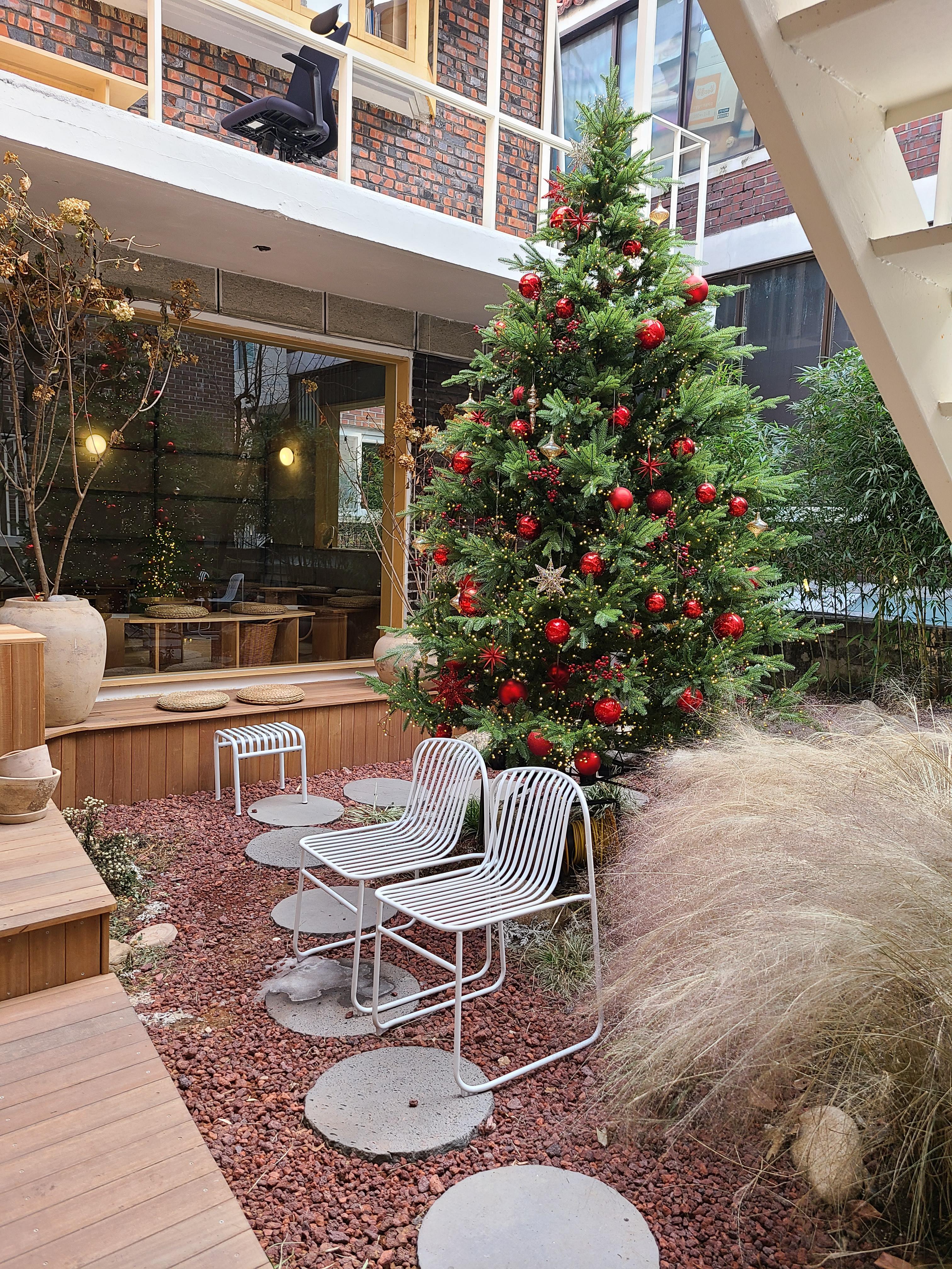 정원이 깔끔하고 예뻐요. 연말이라 트리가 있어서 더욱 좋았습니다.