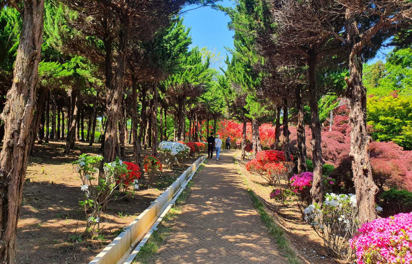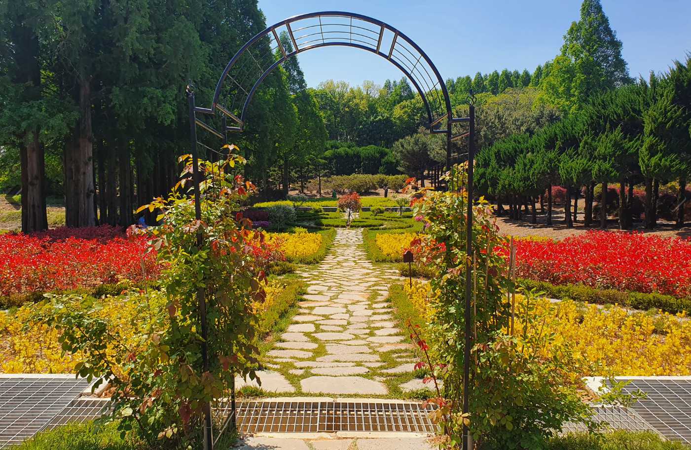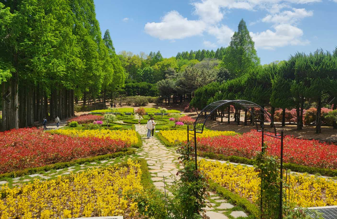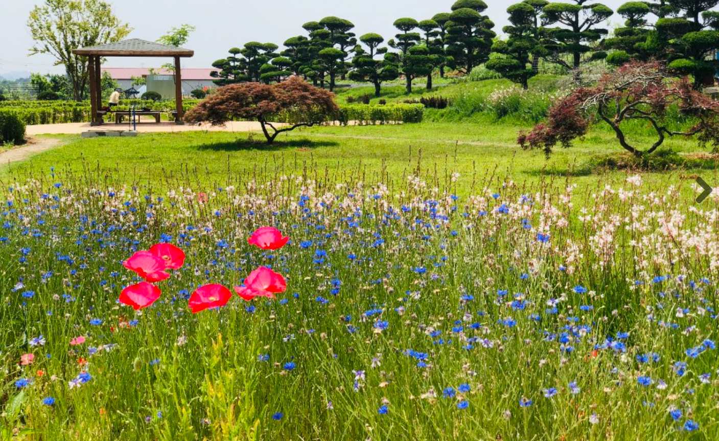 - 현재는 양귀비, 샤스타데이지, 작약, 금계국 등이 피어 있습니다. 봄에는 수선화, 튤립, 목련, 영산홍이 아름답고, 여름에는 양귀비, 백일홍, 장미 등이 많으며, 가을에는 국화와 단풍이 아름답습니다. 겨울에는 향나무와 소나무 눈과 함께 어우러진 모습이 절경입니다.