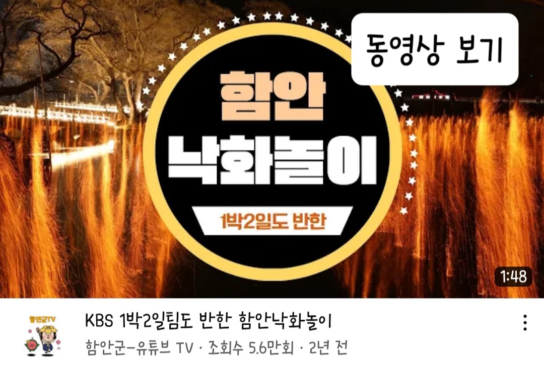 2023년 5월 27일 토요일은 석가탄신일입니다. 석가탄신일에는 각 지역마다 연등 축제 등 다양한 행사를 함께하고 있는데요, 함안에서는 낙화 축제가 유명합니다. 1박 2일에서도 촬영한 바 있는 축제인데요, 어둠 속에서 사르르 떨어져 내리는 불꽃을 보고 있노라면, 말 그대로 꽃잎이 떨어져 내리는 듯 해 마음속에 묘한 기운과 감성을 불러일으킵니다.